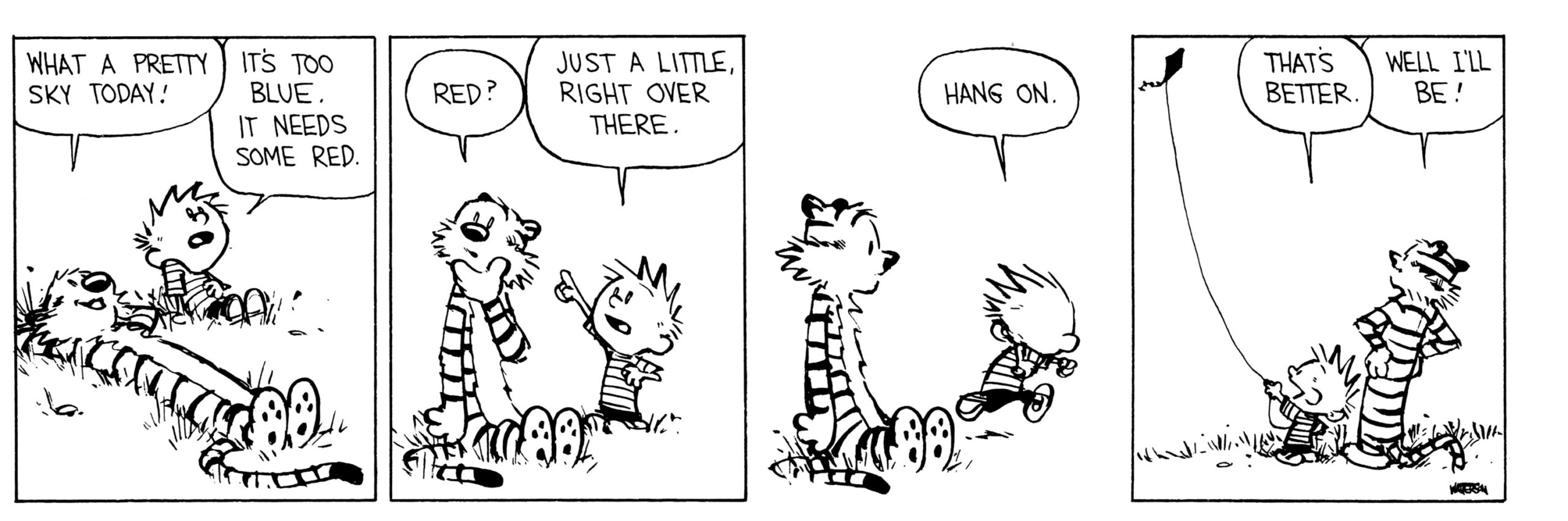 All true, of course – but the most eloquent explanation of what we do was offered by Calvin from the Calvin and Hobbes comic strip:
