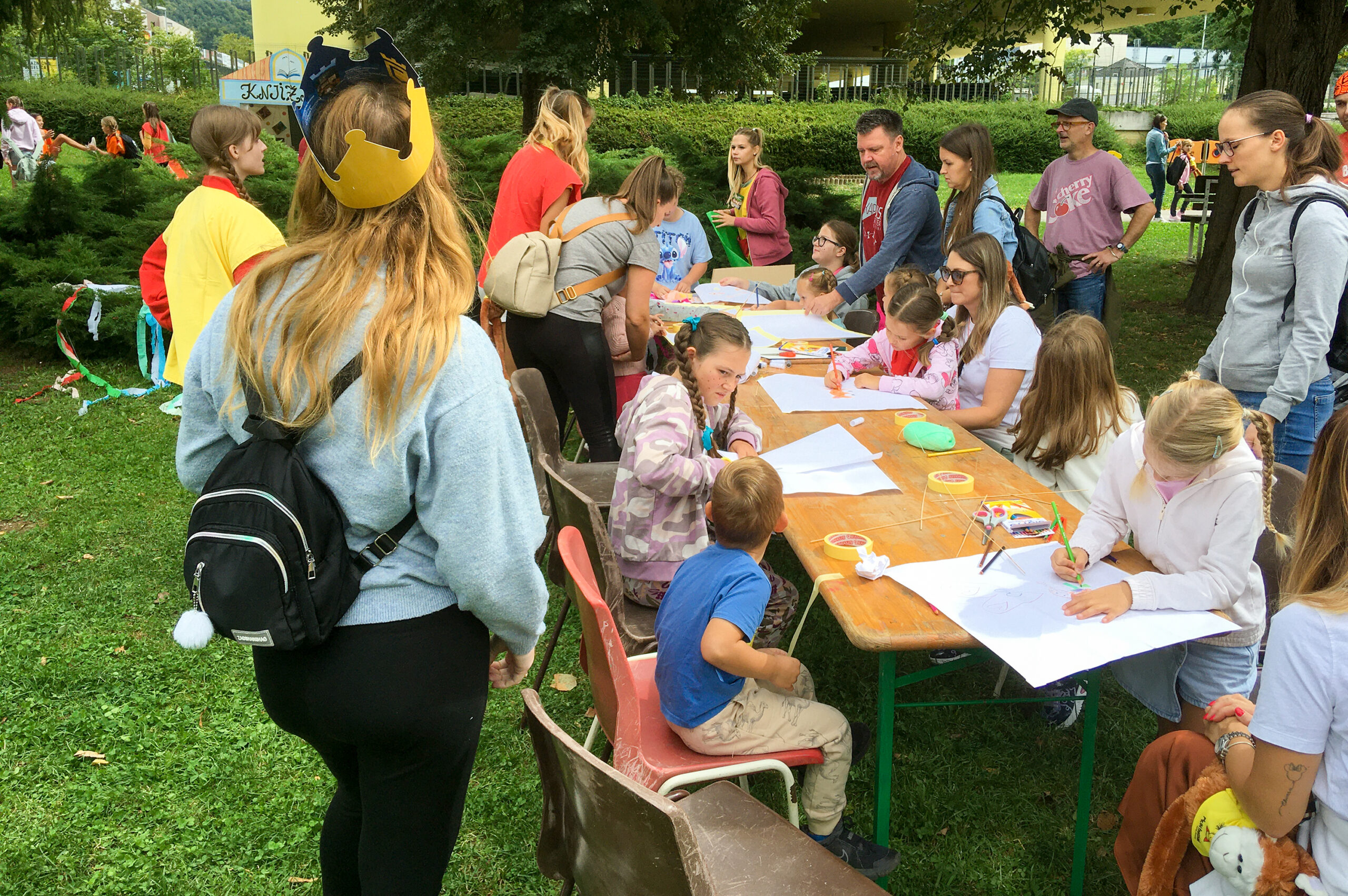 Pika Nogavička je prevzela županskvo, mi pa nebo nad Velenjem. In to kar dobesedno: v dveh dneh norega izdelovanja zmajčkov so otroci (in njihovi starši) izropali vse naše zaloge in izdelali več kot osemsto zmajev, ki so prekrili velenjsko nebo. Brez prostovoljk nam seveda niti slučajno ne bi uspelo krotiti neskončnih, valečih se množic, ki so jih pritegnili zmaji na tem izjemnem otroškem festivalu.