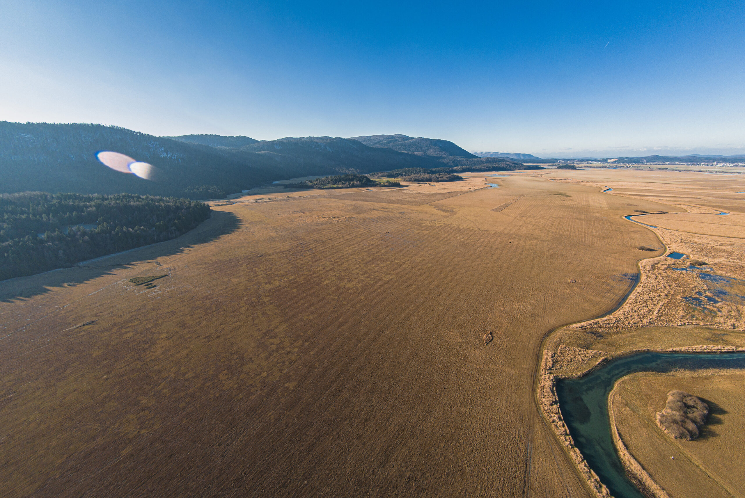 Ni pa bilo enostavno. Po kratkem in relativno uspešnem zmajskem fotkanju gradu Snežnik (to bo naslednji članek!), kjer so vetrovi zoprni in drevesa lačna, smo po kratkem skoku do opazovalnice Malnšče upali na prijetno in sproščeno spuščanje zmajev na širjavah zdaj suhega Cerkniškega jezera.