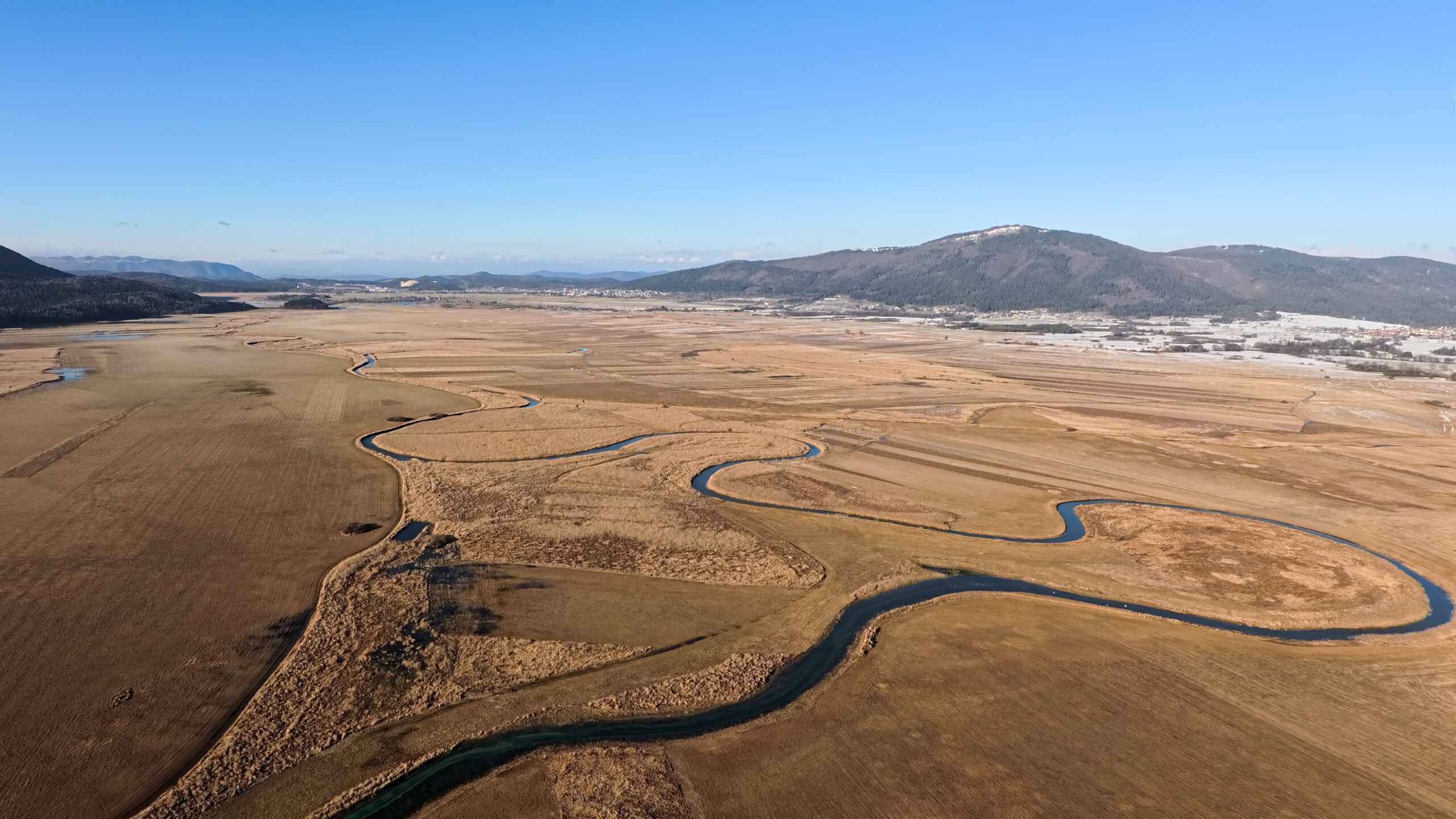 Od tu naprej je načeloma šlo vse gladko (razen da je bilo treba sredi presahlega jezera najiti drevo, na katerega bi lahko privezali zmaja, da bi ga sploh mogli potegniti dol … pa strahotno mrzlega in močnega vetra … pa ledu, ki je pokrival močvaro, da se je udiralo in smo imeli mokre noge … in tako dalje) – pa smo se lahko osredotočili na našega vodnega feniksa: na reko, ki polni in prazni Cerkniško jezero; na reko, ki so jo krotovičili, rezali in oživljali: