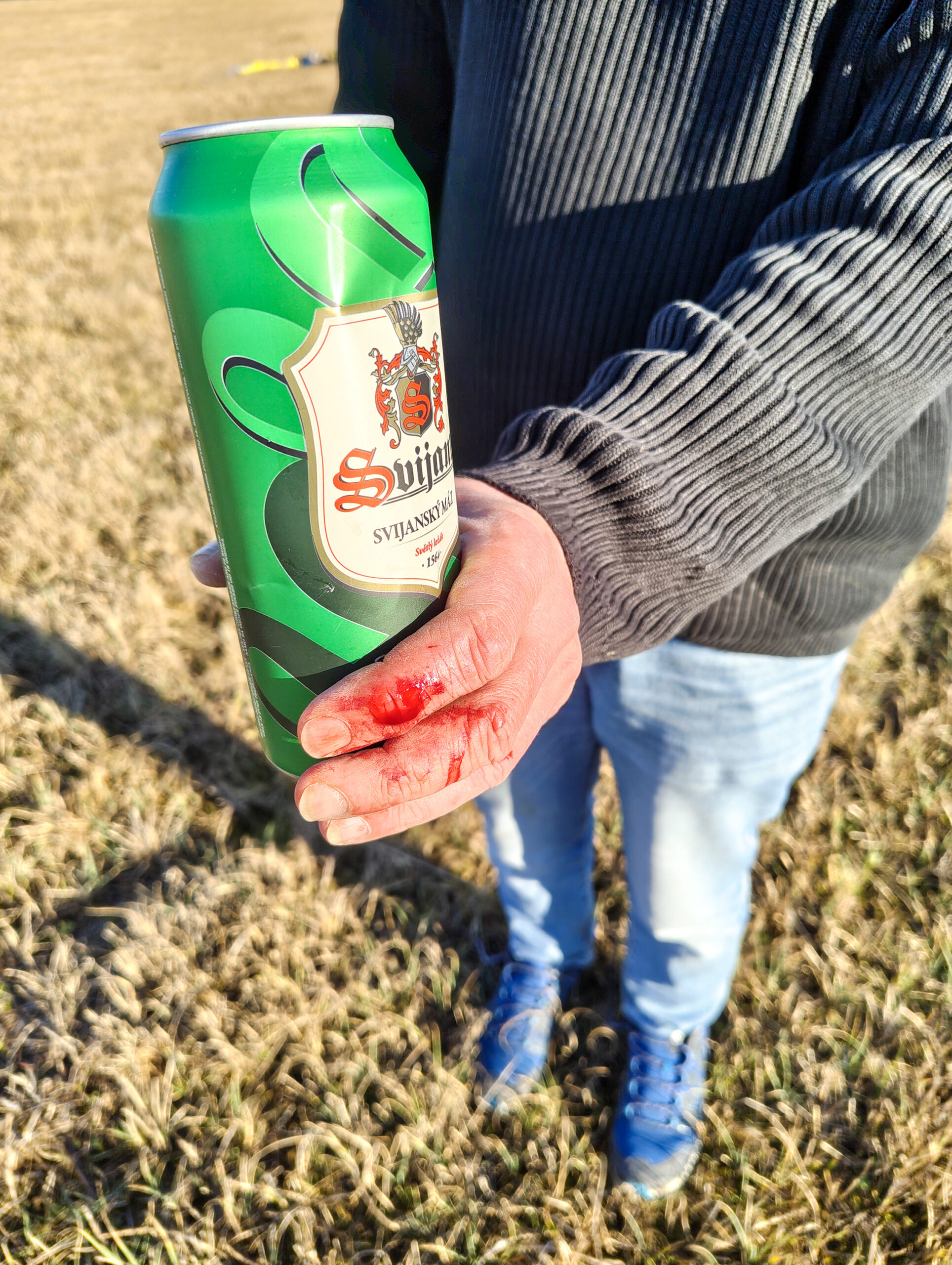 Janez je brihtno svojega sleda zamenjal za povsem novega zmaja (za Mini Milie, 150 centimetrskega francoskega vojaškega zmaja, ki ga nam je svetoval mojster Zoltán Majernik), še preden mu je vrvica začela mesariti roke. Manjši zmaj z drugačno geometrijo vleče dosti manj besno kot velika leteča vreča …