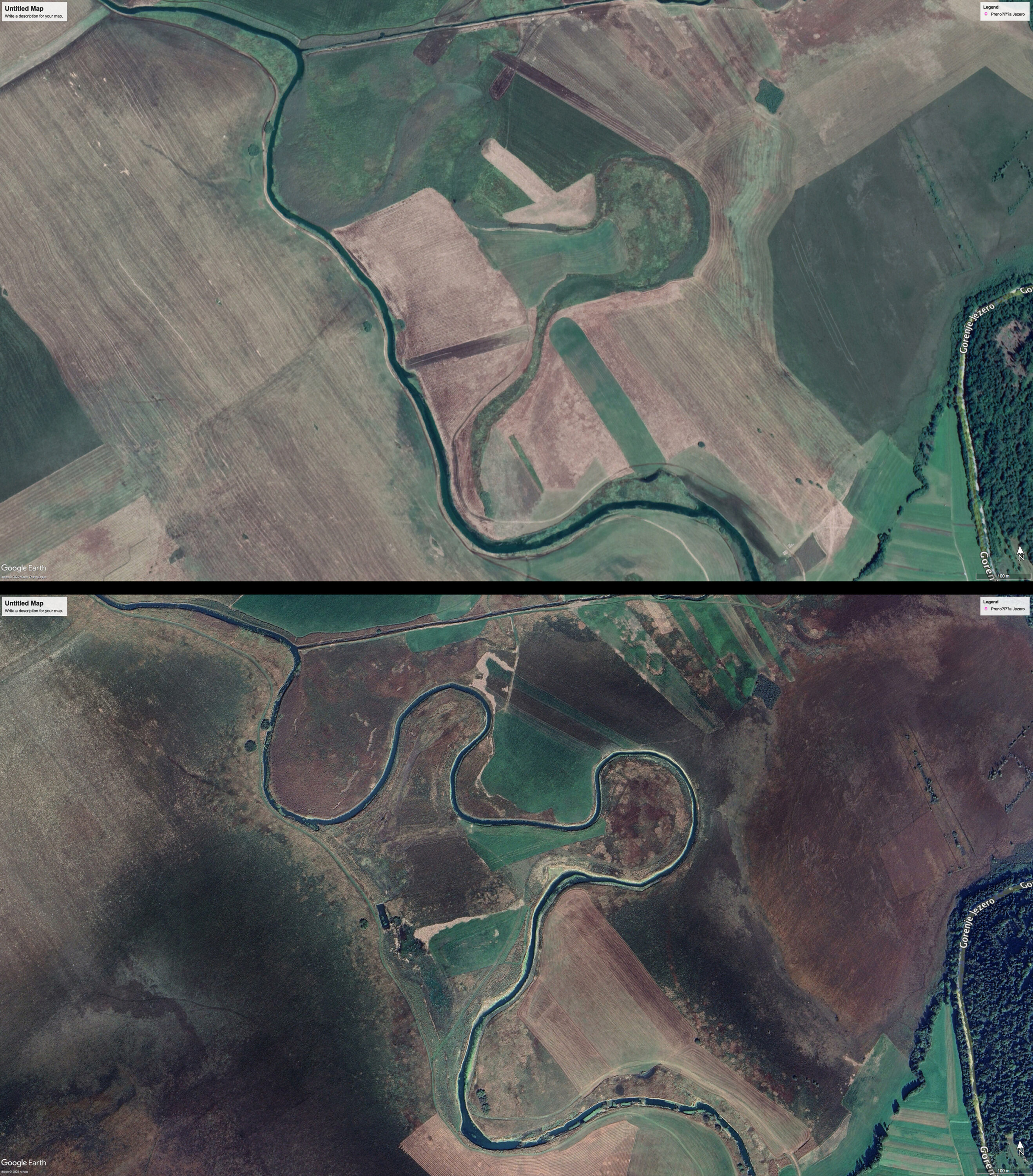 Kako naj se, v le parih letih od odprtja okljukov, ki so bili tako brutalno uničeni, da je vanje morala brutalno poseči težka mehanizacija? Pa se že vidijo rezultati …. celo iz zraka. Izboljšane hidrološke in morfološke značilnosti! Povečana habitatna raznolikost!