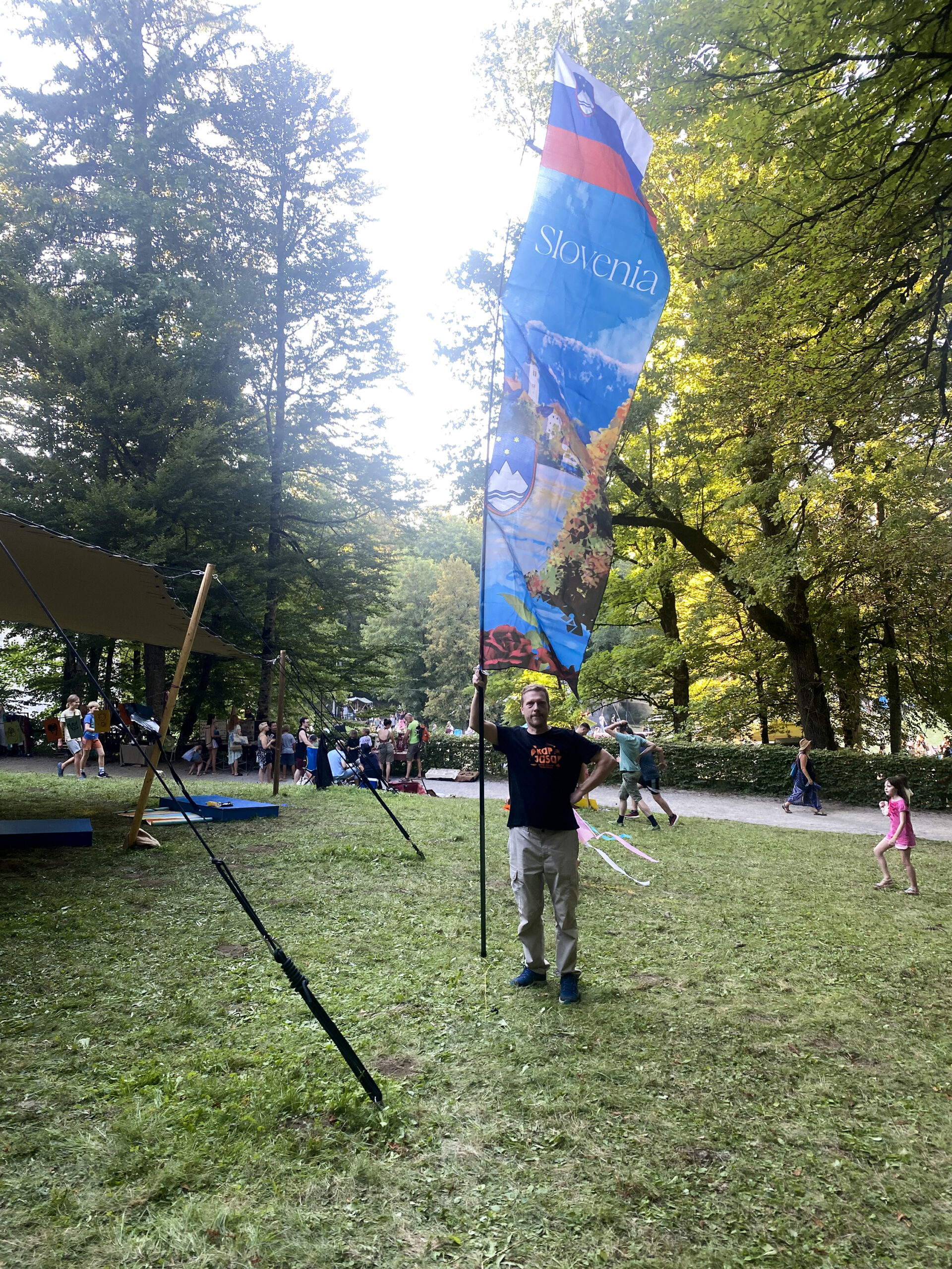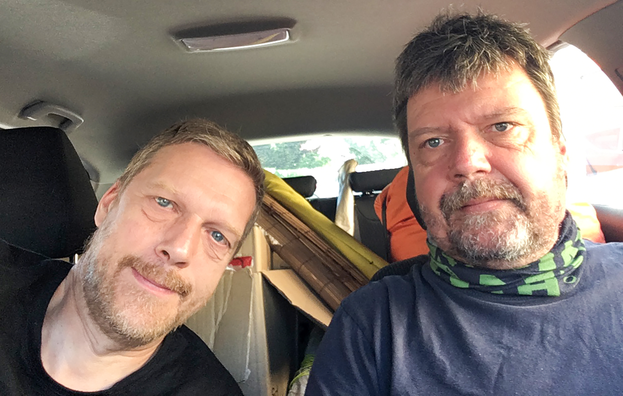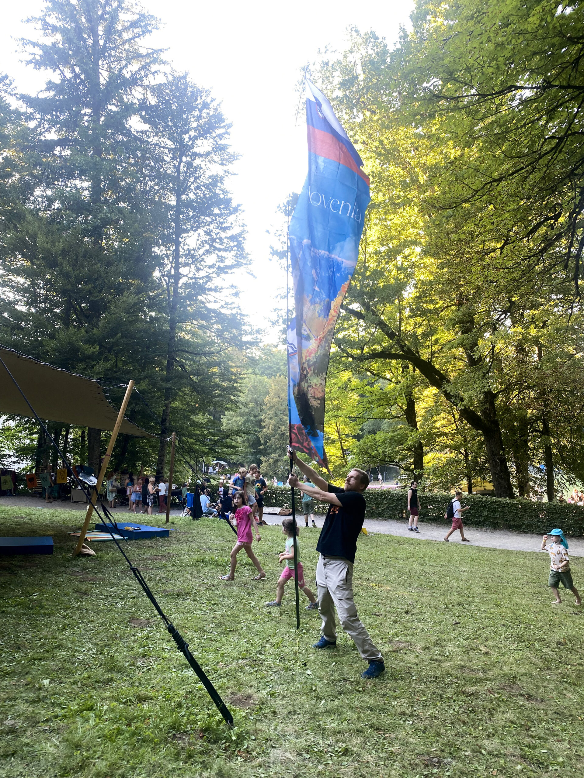 Nam so k sreči že na začetku rekli, da je festival orjaški, pa smo šli na polno: dva avtomobila, kup materiala za delavnice, še en kup zmajev, če bo pihalo – in pet postavnih zmajarjev, odločenih, da stotinam otrok pokažejo, kako se naredi zmaja.