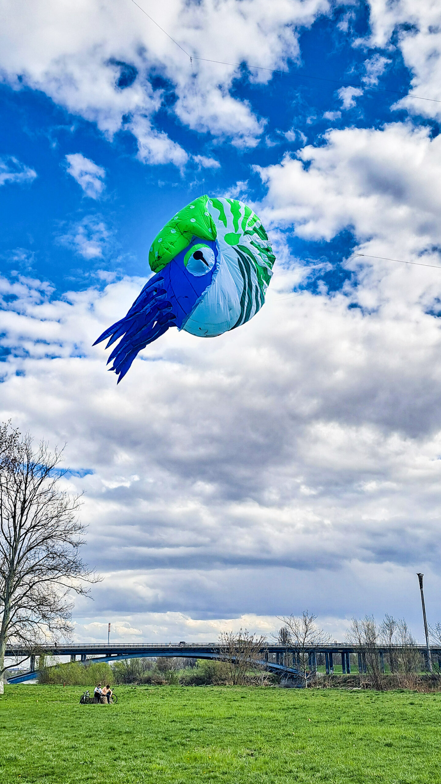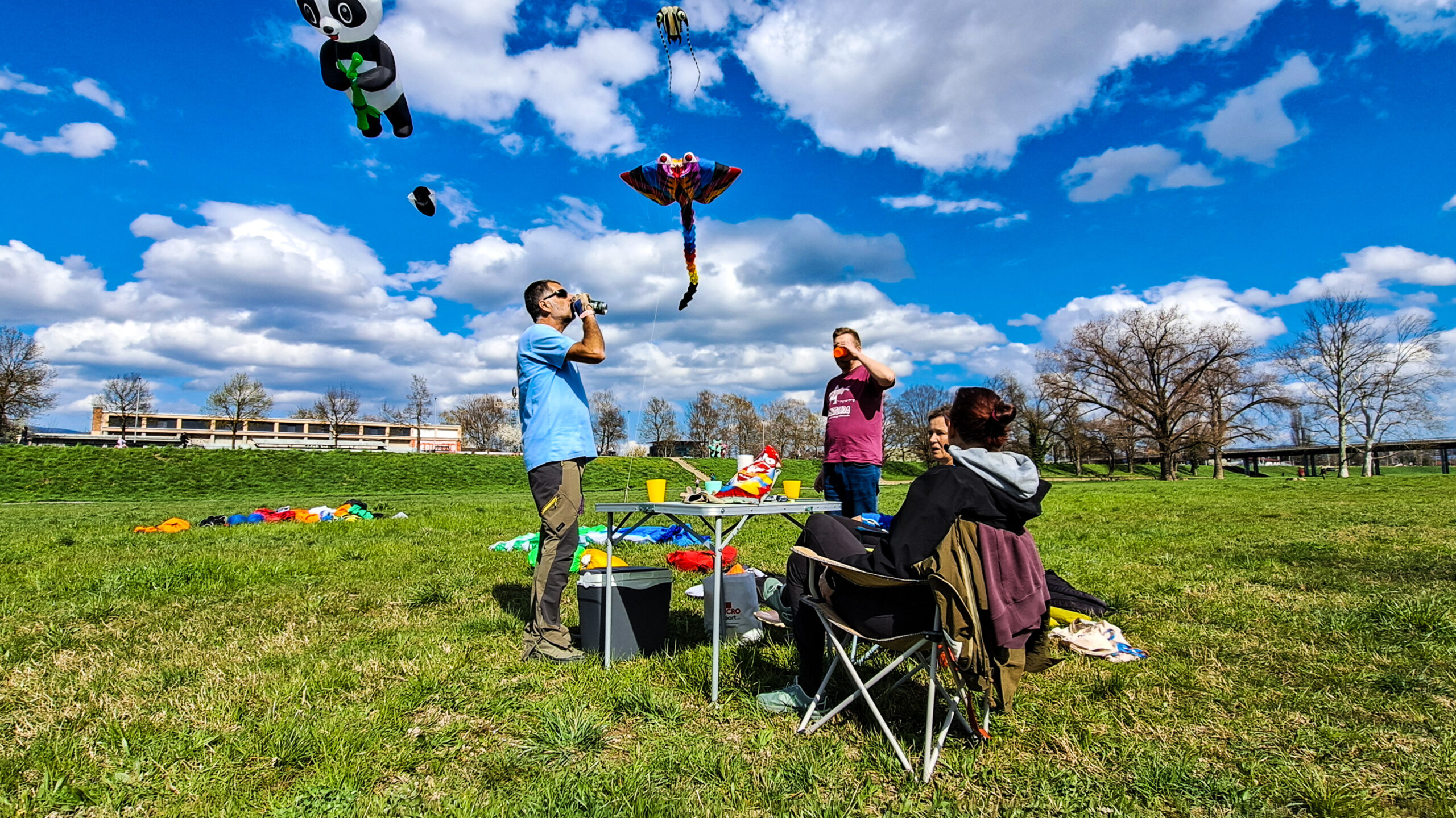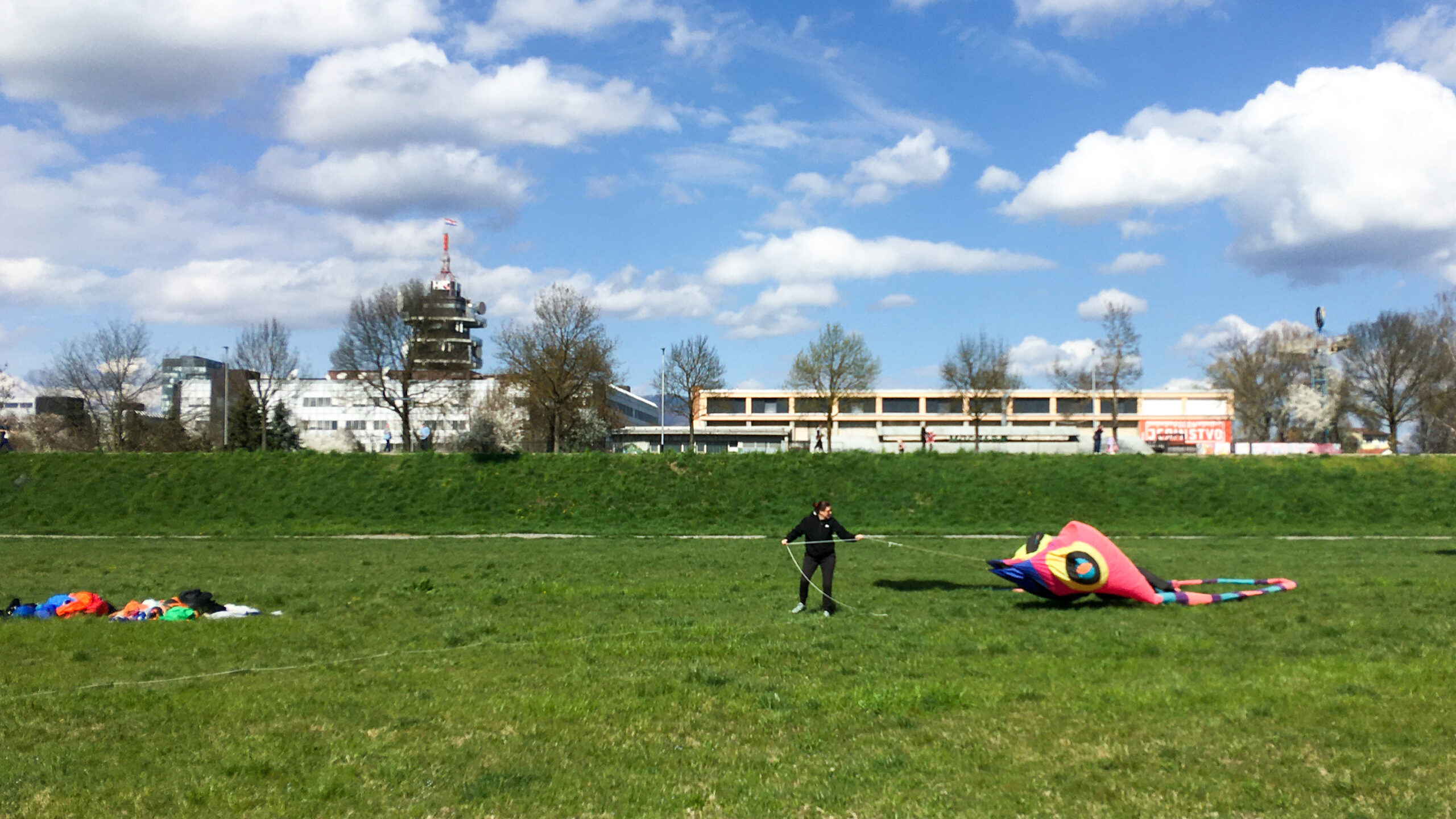 Čudne reči na nebu so hitro privabile radovedneže. Severni breg Save je že tako poln sprehajalcev, tekačev, kolesarjev, družin, kužkov … ki so uživali v prekrasnem pomladnem dnevu.