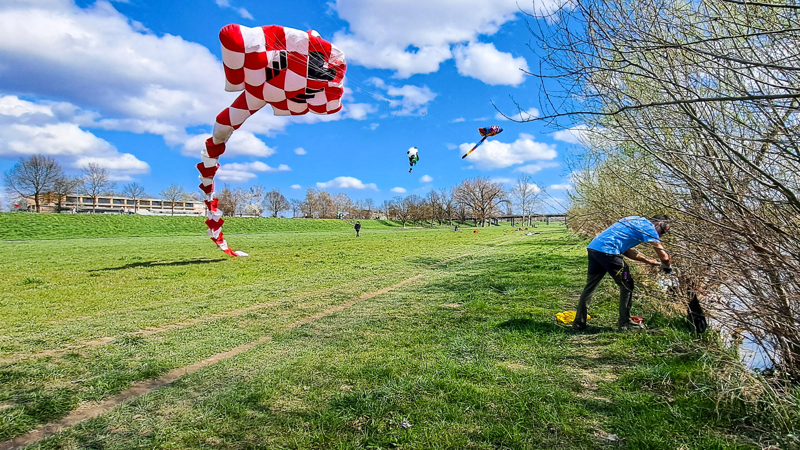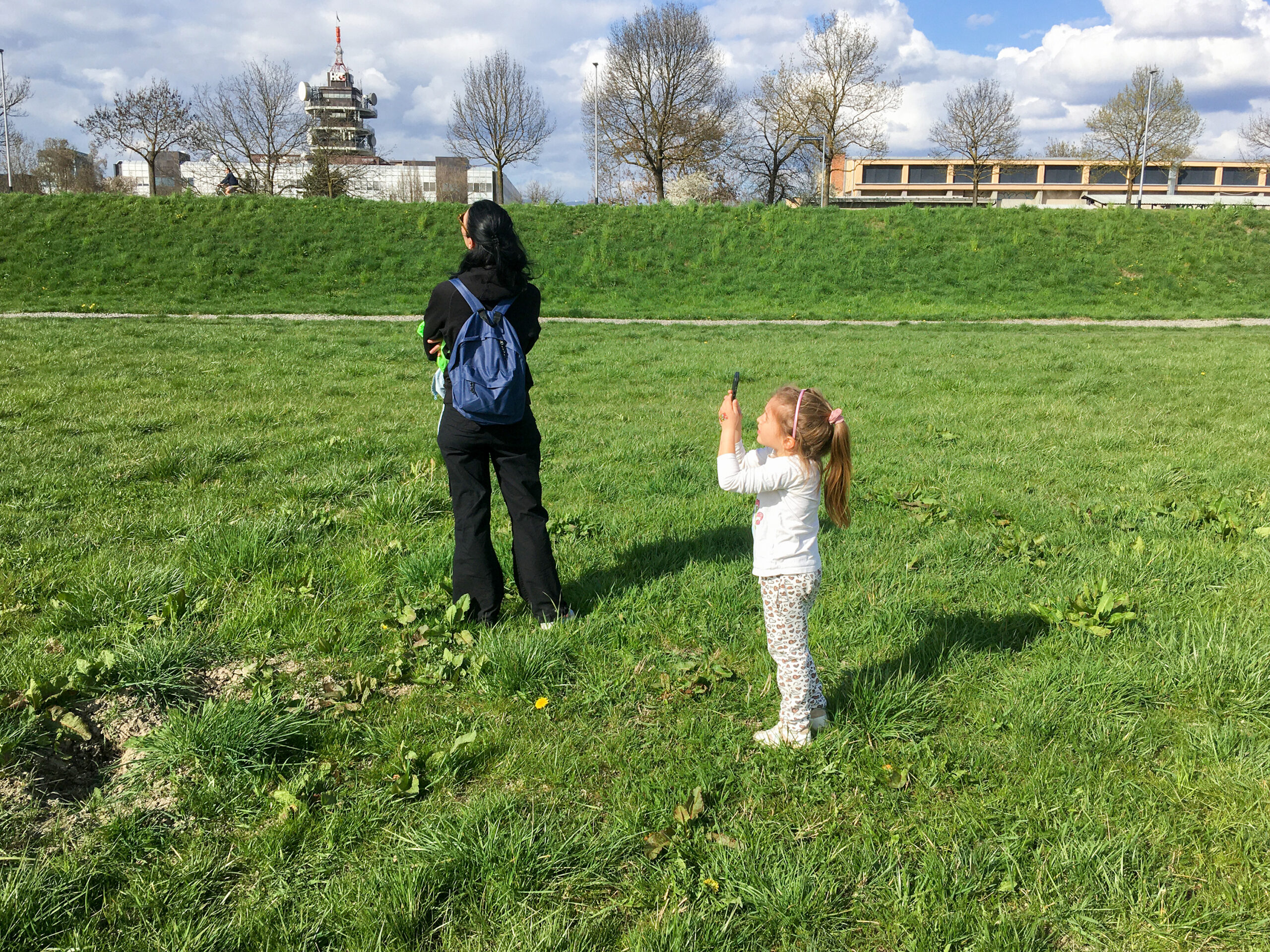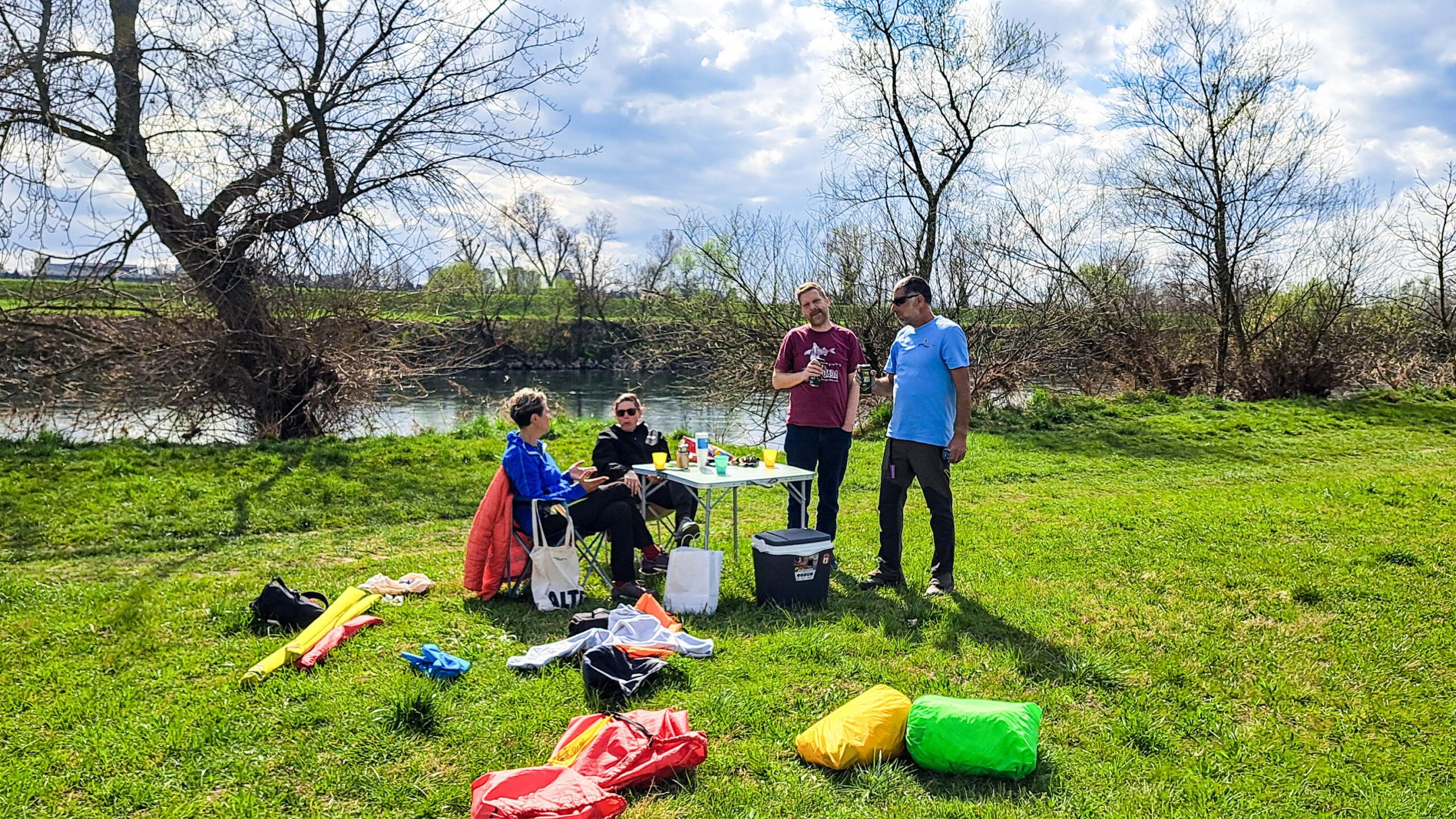 Čudne reči na nebu so hitro privabile radovedneže. Severni breg Save je že tako poln sprehajalcev, tekačev, kolesarjev, družin, kužkov … ki so uživali v prekrasnem pomladnem dnevu.