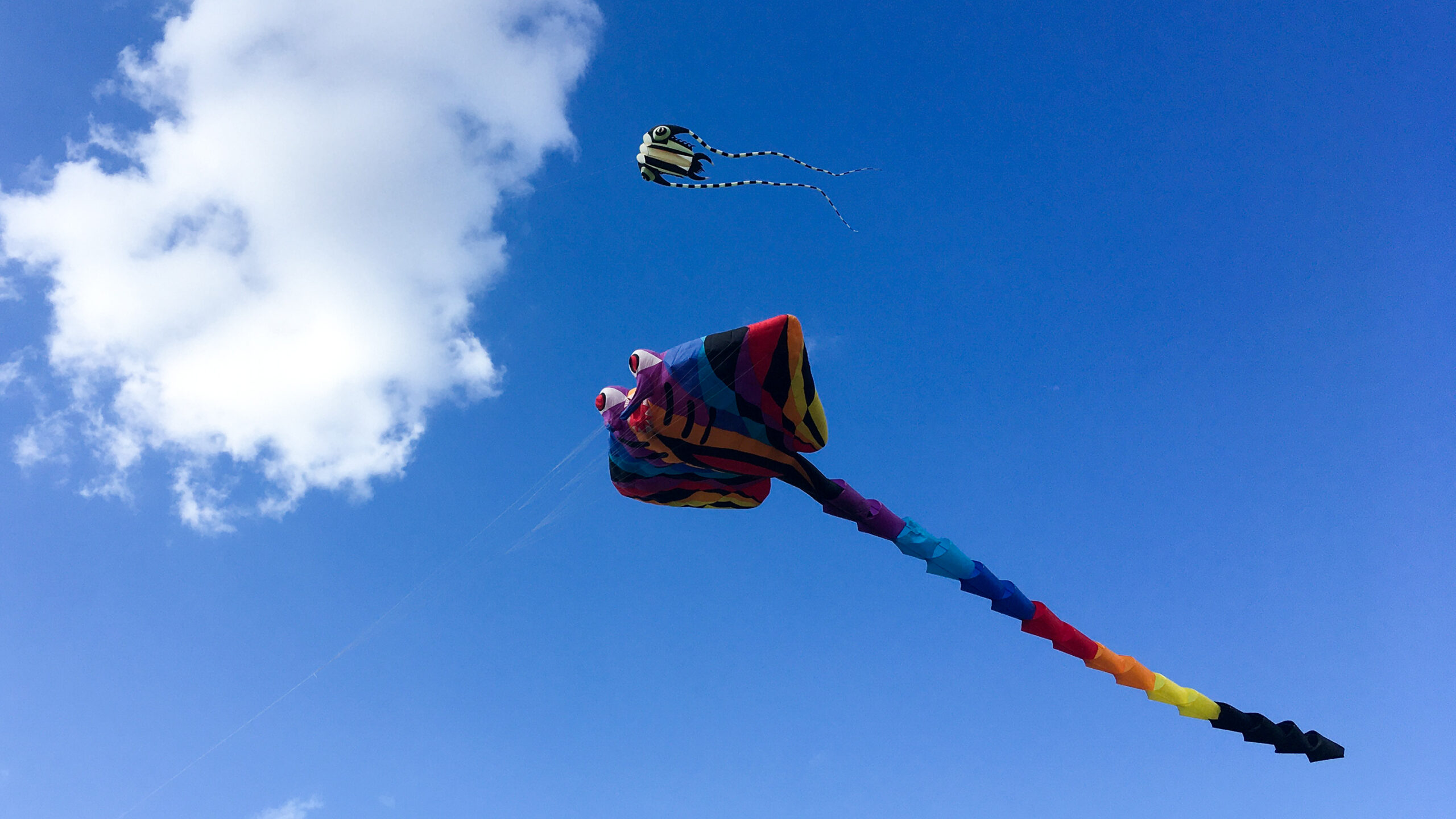 Otroci se najprej sramežljivo držijo ob strani … potem pa jim daš vrvico v roke in se vse spremeni. Saj so skoraj vsi že spuščali zmaja, metuljčka, orla, pikapolonico – a upravljati z ogromno letečo pošastjo je vendarle nekaj povsem drugega.